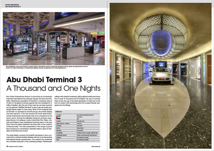 | aktuell专区 阿布扎比国际机场正在成为欧洲,亚洲和澳大利亚间越来越重要的国际枢纽。3号候机楼,占地7.5万平方米,继它完成之后,机场的旅客年容量已增至1200万。但是,在几年中力求客运量翻一番的 “中场终端”计划还没有实现。3号候机楼的大部分购物区是由DFS集团运营操作的,DFS集团是世界领先的免税经营集团。通过新的候机楼,旅游零售专业人士展示了他们在奢华领域里令人印象深刻的核心竞争力。沿独家购物街有19个精品店,如保罗,劳力士,爱马仕和巴宝莉等奢华品牌都在此设立了分支机构。新的免税区一直非常重视对主题区的创立。对商品类型(从奢华型到消费导向型)的明确分类,让旅客可以轻松四处游览。 零售设计公司rkd retail/iQ引出了商店概念,它结合了阿拉伯生活方式与最严格的国际设计规范。其材料混合强调了基本设计的一贯执行,具有东方文化韵味装饰的石膏板天花,稍经磨光的大理石和石材地板让我们想起“一千零一夜”。作为对比,装修中也融入了现代LED技术和LCD显示屏等最新高科技的应用。 |