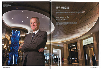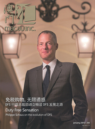 奢华无极限 DFS 集团公司行政总裁邵峰立 (Philippe Schaus)细说DFS 环球免税店如何成长为服务国际旅行者的首屈一指的奢侈品零售商,以及澳门作为购物目的地的巨大潜力。 DFS是服务于国际旅行者的全球奢侈品旅游零售商领军者。在DFS于澳门DFS环球免税店中,现正举行该集团一年一度的瞩目盛事一一旷世藏表鉴赏会,为此,DFS集团公司行政总裁邵峰立亲临现场主持本次盛会。与此同时,本刊亦与邵峰立先生相约于 鉴赏会开幕的周末进行访问,在我们会面之时,邵峰立先生已度过一个行程紧凑的周末,而其任务尚未完成一半,当天下午他基本上在一个接一个的媒体访问中度过,而且当晚他还将主持庆祝晚宴。 尽管繁忙如此,邵峰立先生与我见而时,他依然专门起立,与我握手致以欢迎,流露着温暖笑容,握手坚定有力,由此不难看出,为何全球众多顶级奢侈品牌会如此信任这个男人。 “我们的任务就是在一个专为国际旅行者服务的环境里,忠实地呈现合作奢侈品牌的高贵面貌,”邵峰立先生说道,他说话的方式礼貌而充满自信。我刚刚从澳门DFS环球免税店内走过,这里如全球所有的高级百货公司一样气氛优雅,因而我认为他说的非常正确;实际上,你很可能会误以为澳门DFS环球免税店内的各间店铺并非由DFS管理,而是由各个品牌独立运营。从灯光到广告牌,每一个细节都反应出DFS拥有一支品味超凡的管理团队,为呈现各个品牌的精髓而努力不懈,无微不至。