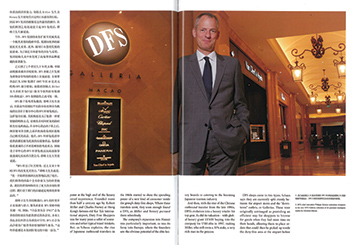 DFS经历了长久发展,最终成为今时今日的顶级奢侈品零售商。五十多年前, Robert Miller及 Charles Feeney 在香港著名的旧启德机场开设了第一间DFS店铺, 之后的很多年中,DFS一直只销售纪念品和其它常见的旅行小饰物。但到了上世纪六十年代,来自日本的出境旅客开始增加,并在 DFS集闭的免税店中体现出这个全新顾客群 体强劲的消费能力。创始人Miller先生及 Feeney先生密切关注这些日本游客的行踪,因而DFS集团亦跟随着这些游客的脚步,在他们所到之处迅速建立起DFS免税店,邵峰立先生解说道。 当年, DFS集团将业务扩展至夏威夷是一个极其重要的战略举措。集团向欧洲的拓展也至关重要。此外,而对日本蓬勃发展的旅游业,为了满足日本游客的喜好与需要,集团创始人从中亦发现了高端奢侈品牌蕴藏的显著潜力。 之后到了上个世纪九十年代末期,中国涌现越来越多出境旅客,DFS亦随之在发展 为奢侈品零售商的道路上全速前进。全球奢侈品巨头LVMH集团于1997年以16亿美元收购DFS部分股权,而借此创始人Miller 先生亦跃升为巨富(他至今依然持有集团 31%的权益),DFS集团估值之高可见一斑。 DFS旗下有两类免税店,邵峰立先生表示,目前这些店铺以平均的分布比例分为机场店以及位于都市中心的DFS环球免税店。这样划分店铺,其原构思是为了提供一种更便捷的购物方式,让顾客在时间更充裕的时候先行选购商品,在市中心的店内下单之后,顾客便可在登机之前在机场的免税区提取自己购买的商品。现在,DFS环球免税店中提供的都是极为优质的商端奢侈品,免税价格优惠通常已不再是顾客的考虑重点,因而设于市中心的DFS环球免税店反而逐渐靠拢进而比肩高档百货公司,邵峰立先生笑着说道。 “DFS经历了巨大转变,过去五至十年 间DFS的改变尤其突出,”邵峰立先生说道, “从一开始销售烟酒火机等物品到了现在,我们销售的商品中会有价值百万的珍贵腕 表。我们的销售网络经历了重大的升级转型 过程。我们设于澳门的店铺就是纯粹的奢侈品店。” 邵峰立先生热切地指出,DFS的转变不止是装潢与设计。服务质素是DFS策略中的关键一环。例如,“白金贵宾会(PSC)”会为尊贵的特別宾客提供舒适的休息室,并奉上食品及饮料供宾客憩息时享用。DFS还会为高净值客户提供尊贵特别的轿车服务。“这些举措都是本集团转变过程中的一部分,”邵峰立先生说道。 采访当日,采访室外面到处可见近年推动DFS产品和服务发展的主要客户群体一一整个商场到处是说着普通话的内地客人,好几间顶级精品店外都有顾客在排队等候,而香奈儿及迪奥门前的队伍最长。 “的确,”邵峰立先生承认,“中国出境旅客涌现的时机对我们十分有利。当时我们已经处于升级过程中,但对于中国顾客为市场带来的巨大转变,我们依然感到万分惊喜。 无人能够预测到中国旅客的消费能力会如此强劲。” DFS对奢华品牌永无止境的追求现已成为传奇,而面对中国出境旅客不断涌现的大潮,该集团选择了集中精力不断丰富旗下奢侈品牌的种类一一或许,我们能说这是无人能及的最佳策略。正如邵峰立先生解释道,对购买奢侈品的顾客而言,DFS能够成为于国际旅途中奢购的旅客首选的奢侈零售商, 其独到之处就是致力为顾客提供“完美流畅的购物体验”。 “在DFS店内,顾客能够轻松浏览众多产品或品牌,”邵峰立先生说道,“因此当人们希望对奢华生活方式有所了解时,自然会想到DFS。我们传递的信息很简单:顾客只需选择心宜的奢华生活风格,然后DFS就会帮你找到最适合的商品。” 早期赶上中国出境游客大潮时,DFS的地利优势不言而喻。对众多中国人而言,机场一直是他们首次接触外国奢侈品的地方。在中国顾客探寻奢华生活内涵的过程中,DFS自然而然地担当了导引的角色。“我们希望告诉顾客,“DFS是你进入奢侈世界的首站,”邵峰立先生说道。