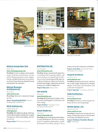 As part of a rebranding strategy, this new prototype for the women’s shoes, handbags, and accessories store evolved into a dreamy and dramatic environment. The brand’s new icon was translated into internally illuminated lighting elements, visual merchandising props, and panel graffiti. Ceramic metal halide discharge lamps provide spot illumination. Other lighting effects include rear illuminated polycarbonate and an applied color-translucent film and LED under shelf lighting.